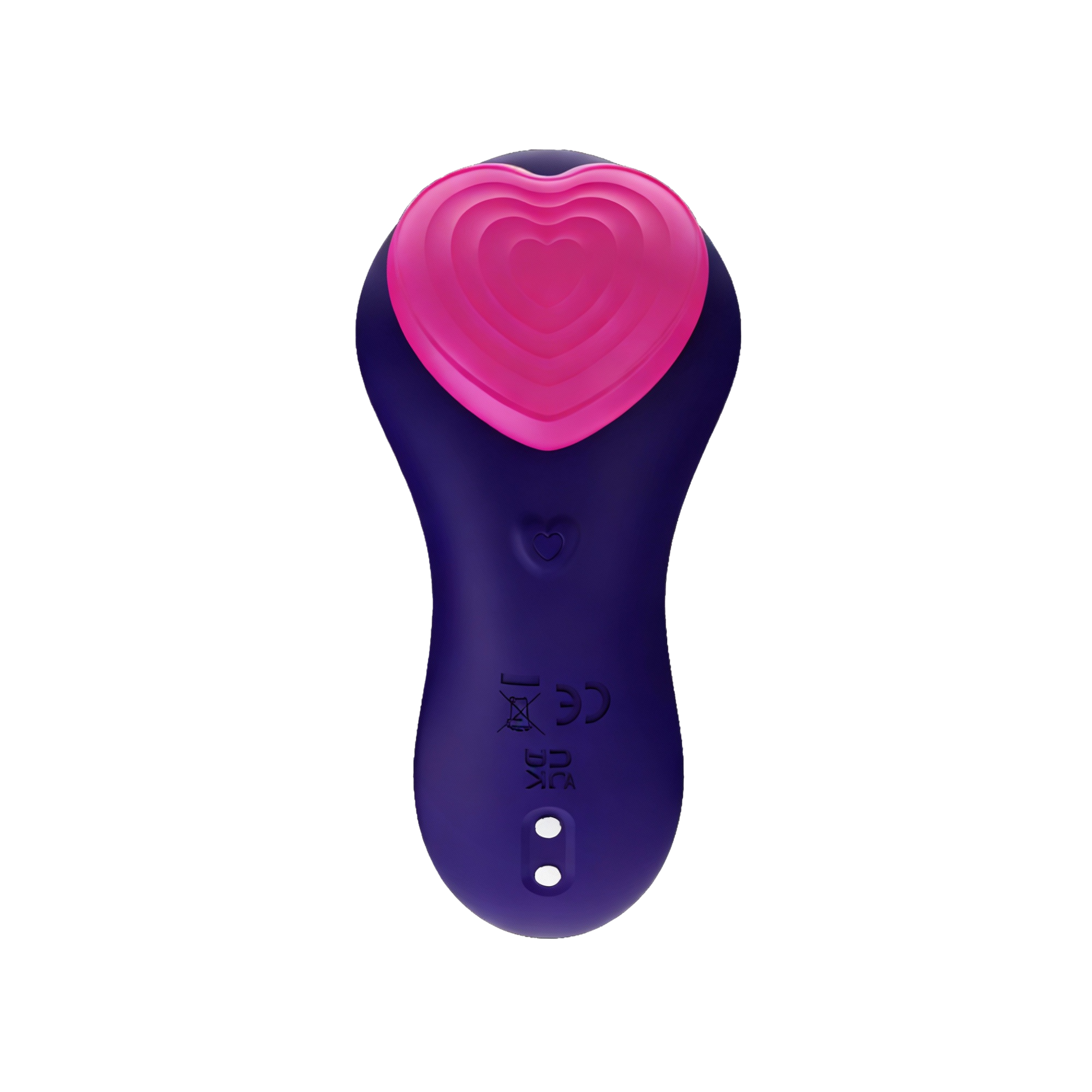3. Press and hold the heart button on the center of the toy to turn it on. Simply press it again, or use the top button on the remote to to cycle through the 9 modes until you find your favorite rhythm. You can also use the Winyi app to control the vibrations.