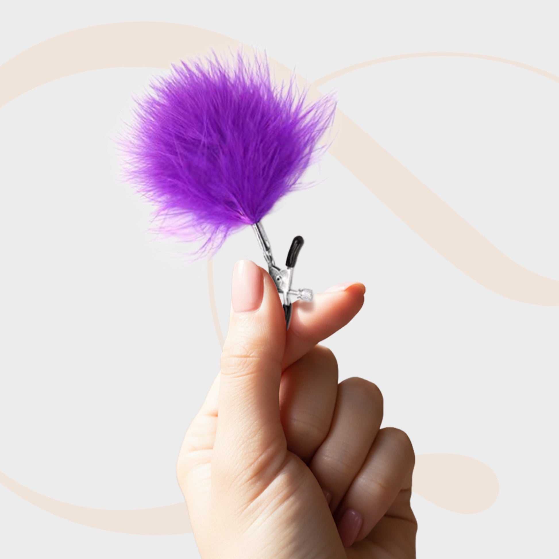 Turn your tease into an art form with Fluffy Nipple Clips, where softness meets sting in perfect harmony. Designed with adjustable pressure screws, these elegant clamps let you customize your pleasure, from a light, tantalizing pinch to a deliciously firm squeeze. The attached purple feathers add a playful, sensual touch, brushing against your skin with every movement. It’s a dance of contrast, sharp metal and soft plumage, pain and pleasure, control and surrender. Whether you’re exploring solo or indulging with a partner, Fluffy Nipple Clips add a sultry edge to your foreplay.
