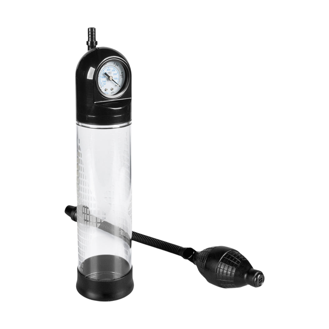 Pump Up is a classic negative-pressure penis pump designed to provide controlled suction through a simple manual pumping system. The transparent cylinder allows you to clearly see and monitor results while the built-in pressure gauge helps maintain safe and consistent vacuum levels.
